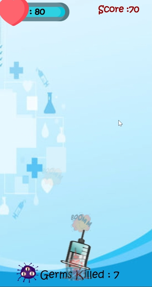 Virus Battle is a simple yet engaging 2D action game created in Construct 2. In this game, players take on the role of a digital defender, tasked with combating a viral outbreak. The main objective is straightforward: aim at the viruses that appear on the screen and shoot them with an antivirus injection by clicking the right mouse button. As the player progresses, the difficulty increases with more viruses appearing at a faster rate, challenging players to stay focused and precise with their shots. The game encourages quick reflexes and accuracy, requiring the player to fight back the viruses before they spread too much. The theme of the game revolves around the concept of fighting against viruses, using the antivirus injection as a weapon to destroy the digital threats. The game's simple mechanics and increasing difficulty provide an engaging experience that immerses players in a race to stop the viral outbreak.
